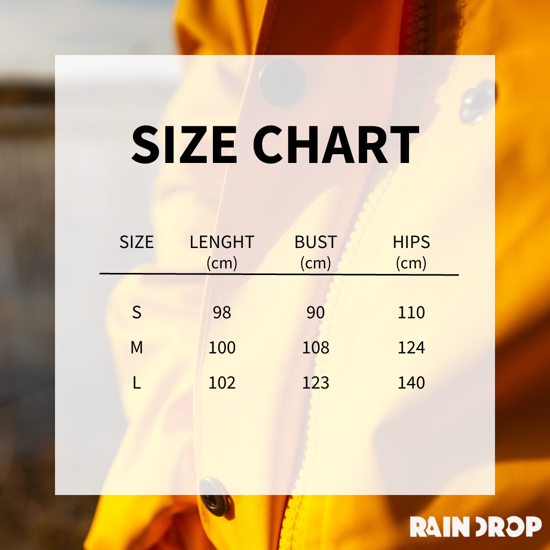 Choose a size from our size chart or choose "Individually made" to order a raincoat, which is made specially for you based on your body measurements.
